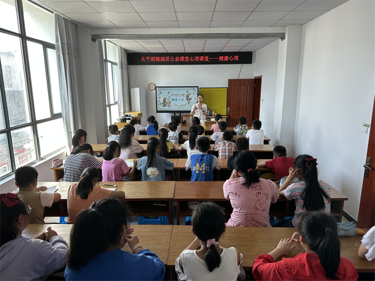 为有效解决农村留守儿童家庭教育、亲情陪伴等方面缺失的问题,2018年太平湖镇新时代文明实践巾帼志愿服务队孵化湖居公益课堂项目,面向镇域及周边乡镇7—16岁留守儿童、贫困孩子等特殊群体,组织返乡大学生、“五老”人员等志愿者,利用孩子们放学、周末、寒暑假的空闲时间,开展手工制作、课业辅导、互动游戏、亲子阅读等活动,并常态化提供卫生保健、心理疏导、儿童维权、家庭教育指导等精细化志愿服务。5年多来,项目已免费开设课程510余节,指导问题家庭280余户,受益儿童达11400人次,参与志愿者210余名,累计志愿服务时长9600小时。项目于2020 年被列入省级妇女儿童发展专项资金项目点,2021年被列入省级工会阳光家园托管班示范点,2022年被列入全国工会阳光家园托管班项目点。