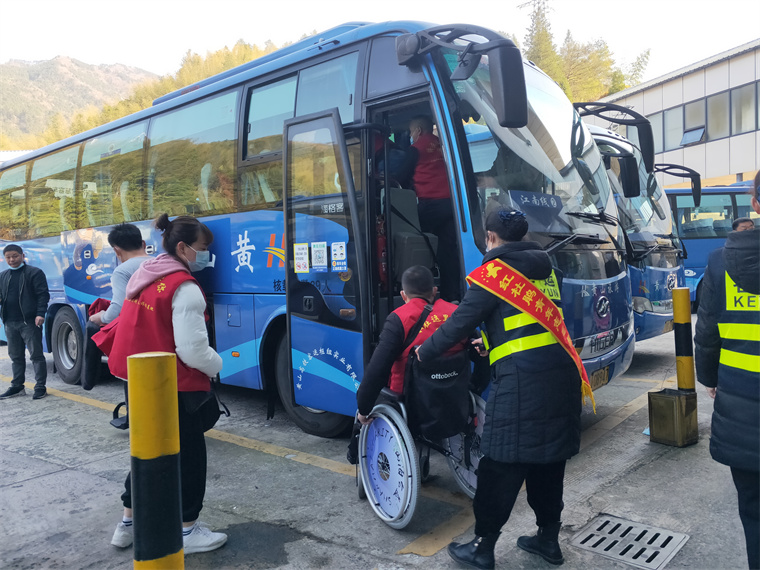 图为红杜鹃志愿者为残疾旅客提供绿色服务
