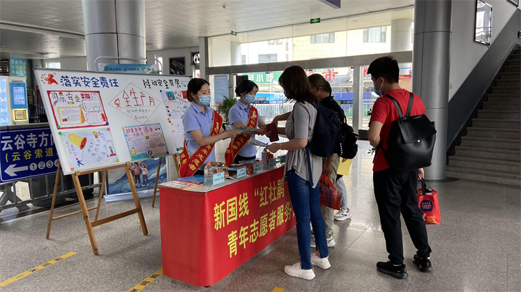 图为红杜鹃志愿者向广大游客宣传安全知识