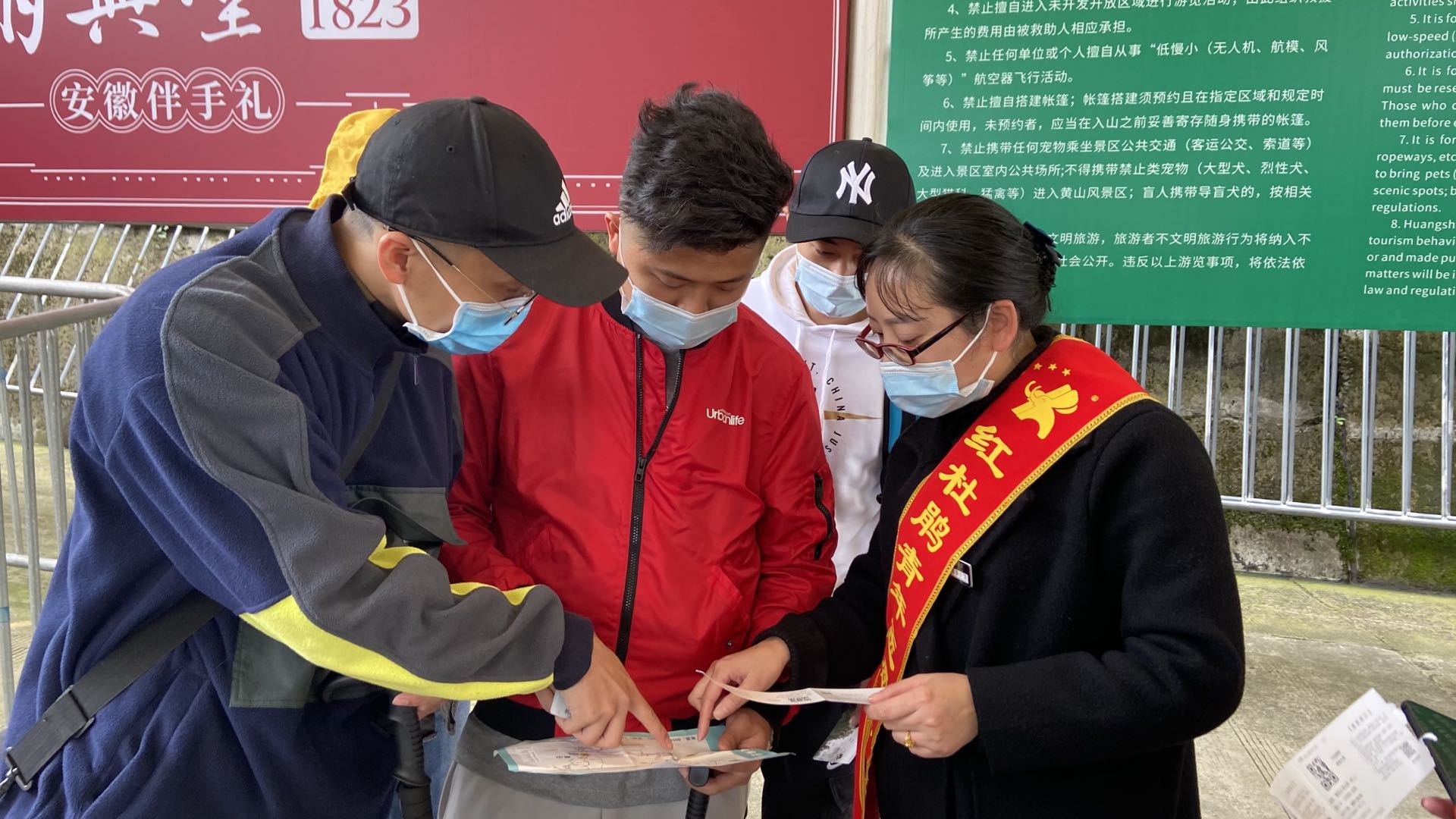 兔年春节期间,每天来黄游客高达3.5万人次,给景区运转带来了极大的挑战。新国线“红杜鹃”志愿服务队队员们主动放弃了节假日陪伴亲人的宝贵时间,始终坚守在各个路口和站点上,一遍又一遍耐心地引导人流,为每一位有需要的游客做好后勤服务。“你好,我手刚刚划破了,您这有创口贴吗?” “请问西海峡谷从那边过去?”“周边还有什么景点可以推荐一下吗?”……志愿者们热情地解答游客们的各种问题,时刻不忘提醒游客们注意脚下安全,并向前来的游客们发放文明旅游手册等宣传资料。一言一行、一点一滴,绘就了一幅温暖、温馨、温情的壮美画卷。