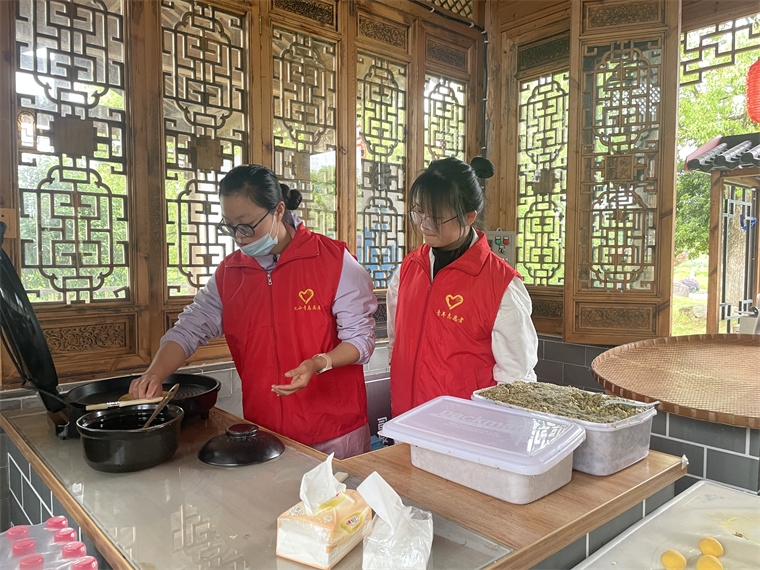 2023年“五一”节期间,“巧厨娘”志愿者来到了徽州区谢裕大茶博园现场,她们自制玉米粿、黄山烧饼、徽州馄饨、菊花茶饮品等“家厨”私房美食,吸引了无数游客及周边群众驻足观看、购买,志愿者们通过美食实现了自我价值、增加了家庭收入,同时也用实际行动为乡村旅游发展增添了一份动力。