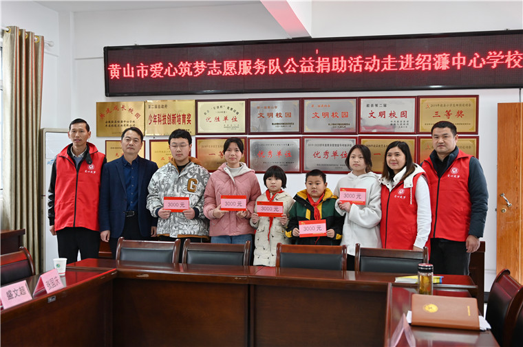 图为吕后到歙县绍濂中心小学捐资助学