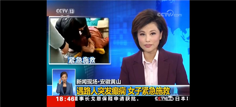 2019年3月5日,在屯溪区前园菜场门口,一位老人突然全身抽搐倒地,脸色煞白、呼吸微弱。就在大家不知所措之时,恰好前来买菜的吕后发现了情况。她二话不说,立马跑到老人身边,细心观察后,凭借平时积累的急救知识对老人进行紧急施救。一边疏散围观群众、清理老人口腔异物,一边安抚老人尽量放松身心。不久,救护车也赶到现场,吕后帮老人抬上救护车便默默离开。此事迹被中央电视台新闻频道报道,称她是新时代的活雷锋!