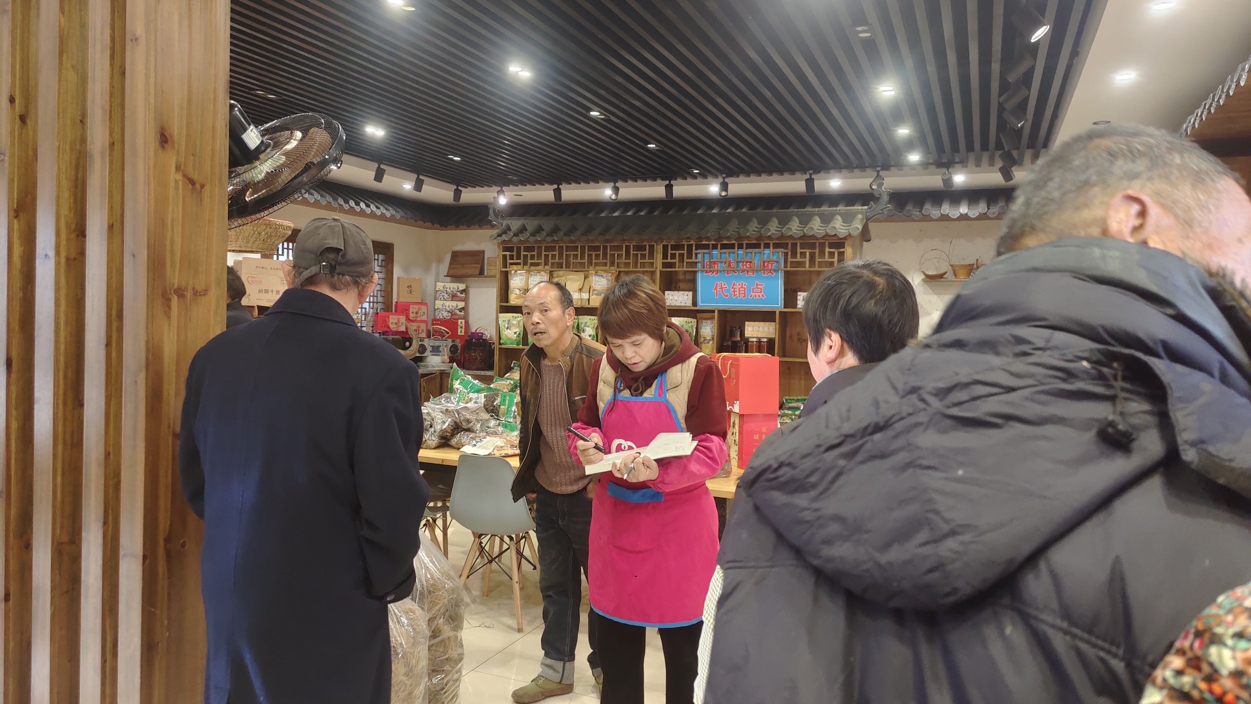 程彩玲在帮助村民登记农产品信息