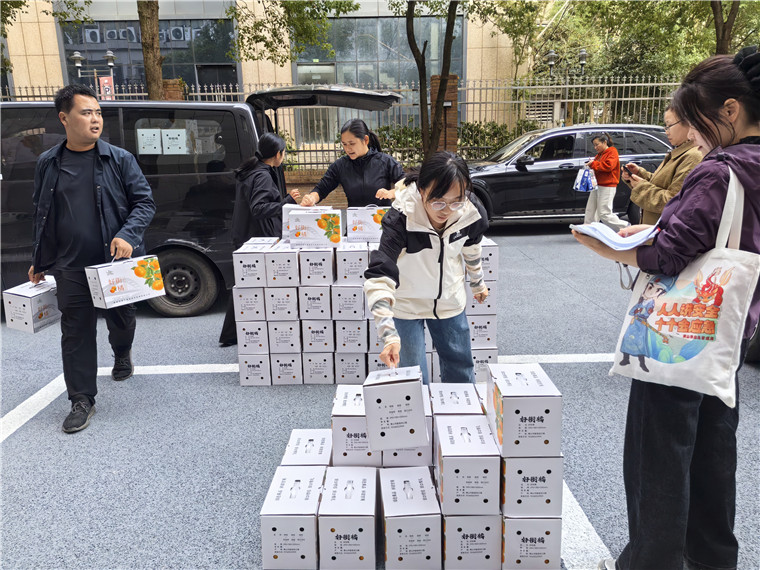 11月7日下午,一辆满载“三口柑桔”的货车缓缓驶入黄山日报社大院。扫码、付款、拎桔……短短半小时,285箱黄澄澄的桔子被市直单位党员、社区工作者和爱心市民“抢购”一空。