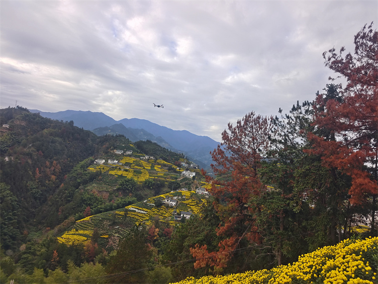 初冬的歙县溪头镇横心岭,因海拔较高造就了独特的立体花海景观。层层叠叠的皇菊沿山地梯次绽放,金黄花瓣在青山映衬下错落有致,从山脚到山腰的立体景致吸引着省内外摄影爱好者与游客纷至沓来。为让大家沉浸式感受这份自然与人文交融的美景,溪头镇精心部署,组建志愿服务队,为菊花摄影活动提供全方位保障。