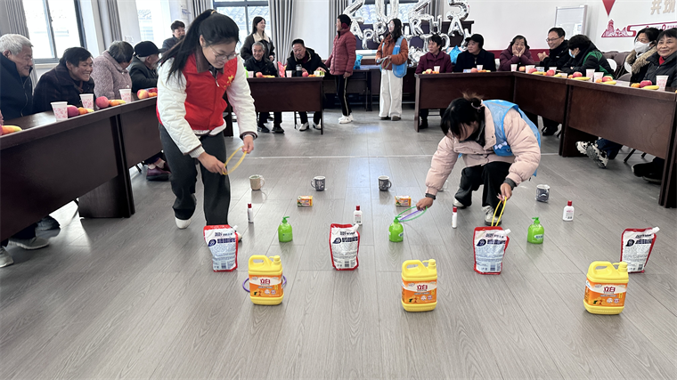 随后的趣味套圈环节更是将活动气氛推向高潮。大家手持套圈,瞄准目标轻轻一抛,欢呼声、喝彩声此起彼伏。有的老人虽然动作稍缓,但在志愿者的鼓励下反复尝试,成功套中奖品时,喜悦之情溢于言表。