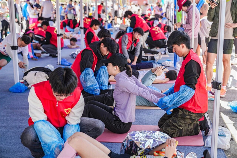 为保障赛事顺畅运转,志愿者团队提前许久便投入筹备。从系统的岗位培训到细致的流程演练,从物资统筹到点位部署,每一个环节都凝聚着用心。赛事当天,当日凌晨4时,志愿者们已整装集结,奔赴各个岗位。补给站内,他们有条不紊地备好饮品与能量补给,用双手传递清凉与力量;赛道沿途,他们以灿烂笑容与加油呐喊驱散跑者疲惫,用清晰指引守护前行方向;起终点处,他们耐心协助物资存取、引导秩序,用细致服务温暖每一位参赛者。
