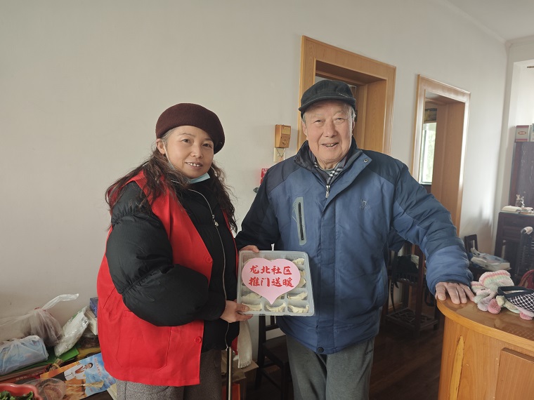 饺子包好后,志愿者们兵分两路开展“暖心配送 法治延伸”服务。一路带着热气腾腾的水饺,逐一走访辖区高龄独居老人、残疾人等特殊群体家庭;另一路则为全华小区物业工作者送上爱心水饺,感谢他们长期以来为小区建设和居民生活的辛勤付出,同时邀请物业工作人员共同参与社区法治宣传与反诈工作,合力织密辖区“法治 安全”防护网。