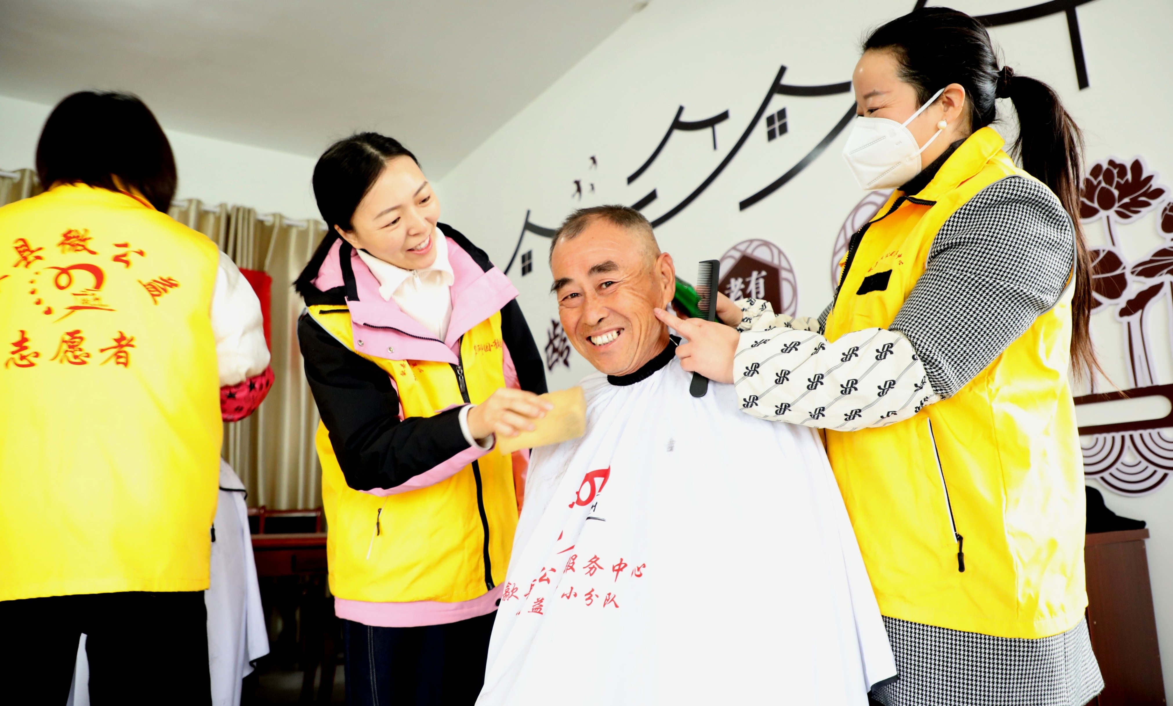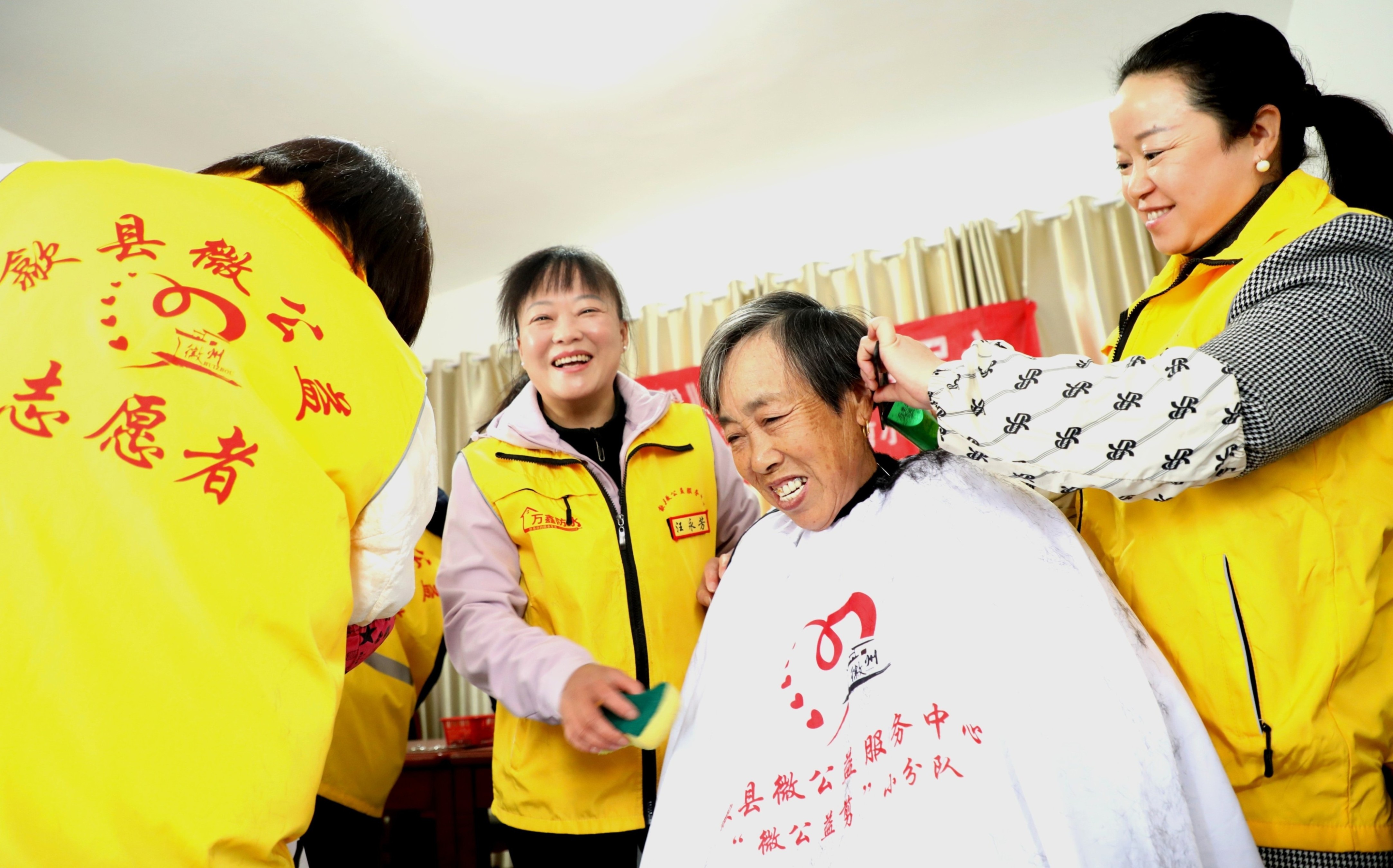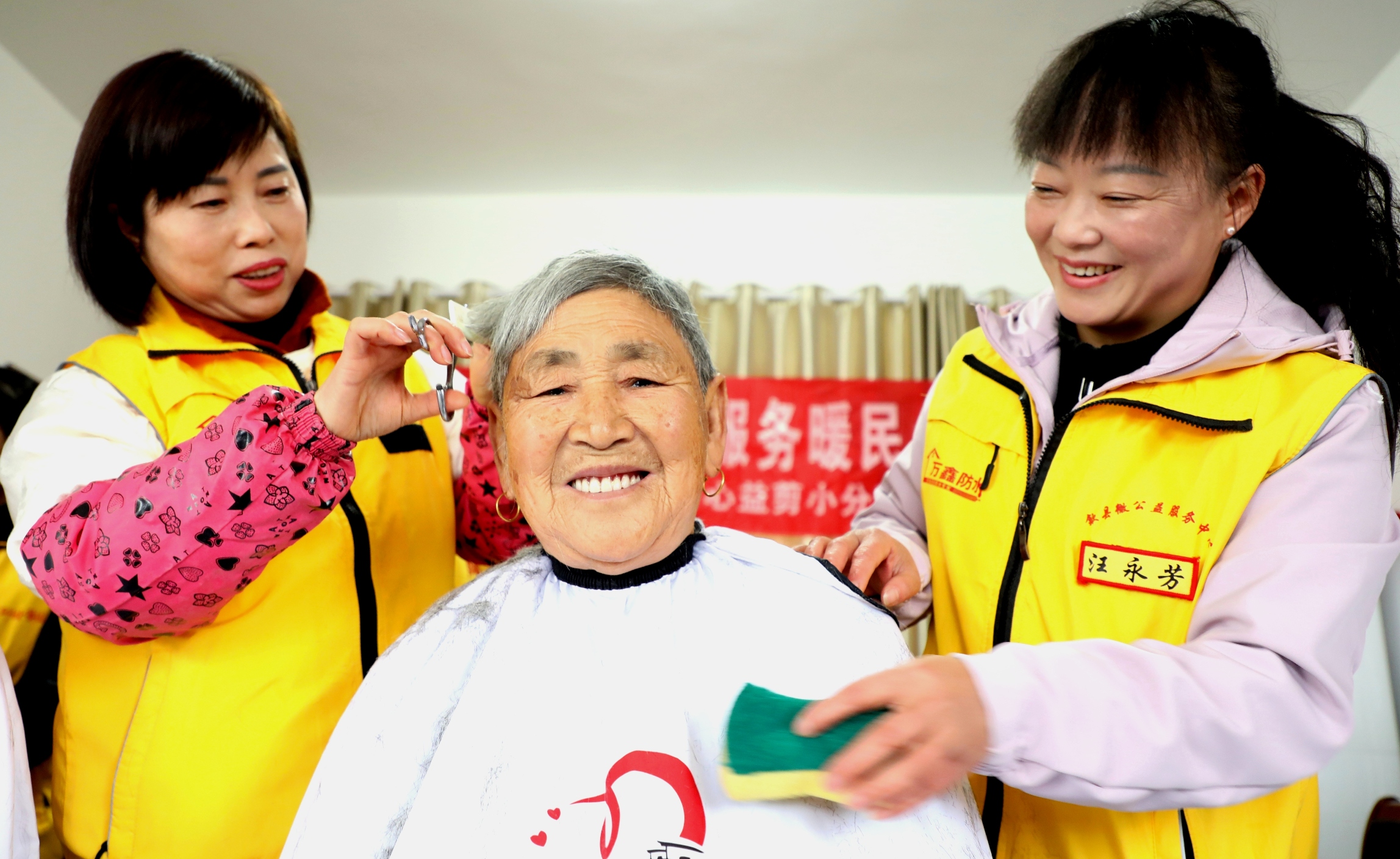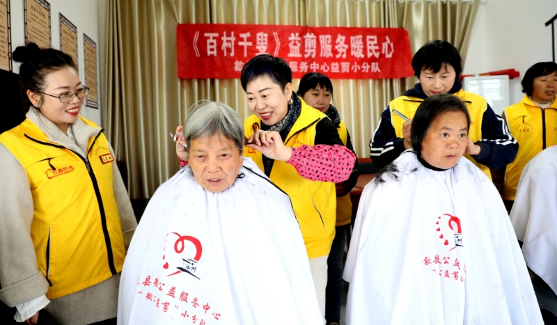 志愿者们在山边乐龄老年活动中心,为高龄老人、行动不便老人义务理发,与老人促膝谈心拉家常,志愿服务“情暖冬日”, 聚焦“她力量”,传播“她精彩”。