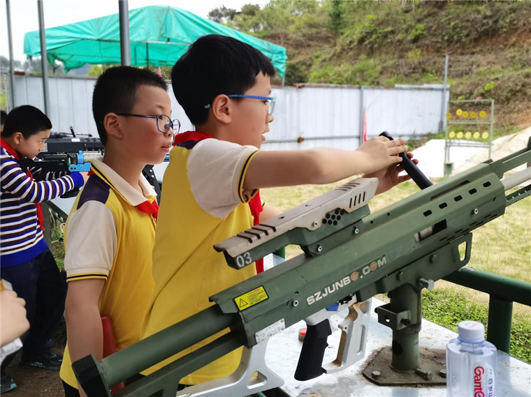 “枪林弹雨已经远去,英雄儿女却光辉永存”。小兵们亲自上阵体验气炮枪,一招一式,专心致志,一举一动,有模有样。在体验中学习和锻炼,乐此不疲,意犹未尽。